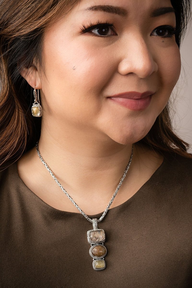 Sterling Silver Tree Of Life Gold Rutilated Quartz Single Stone Dangle Earrings With Bali Wire™