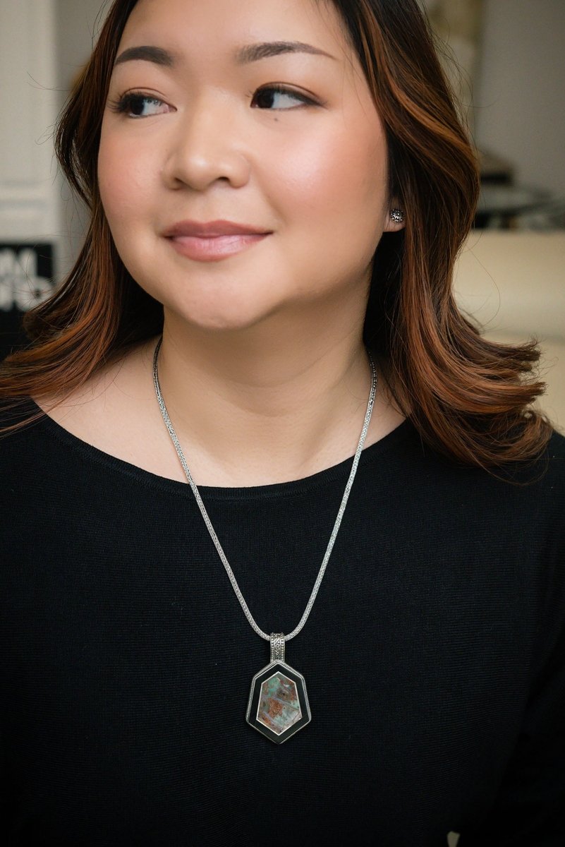 I See Him In Everything Pendant™ in Golden Fuchsite & Black Calcite
