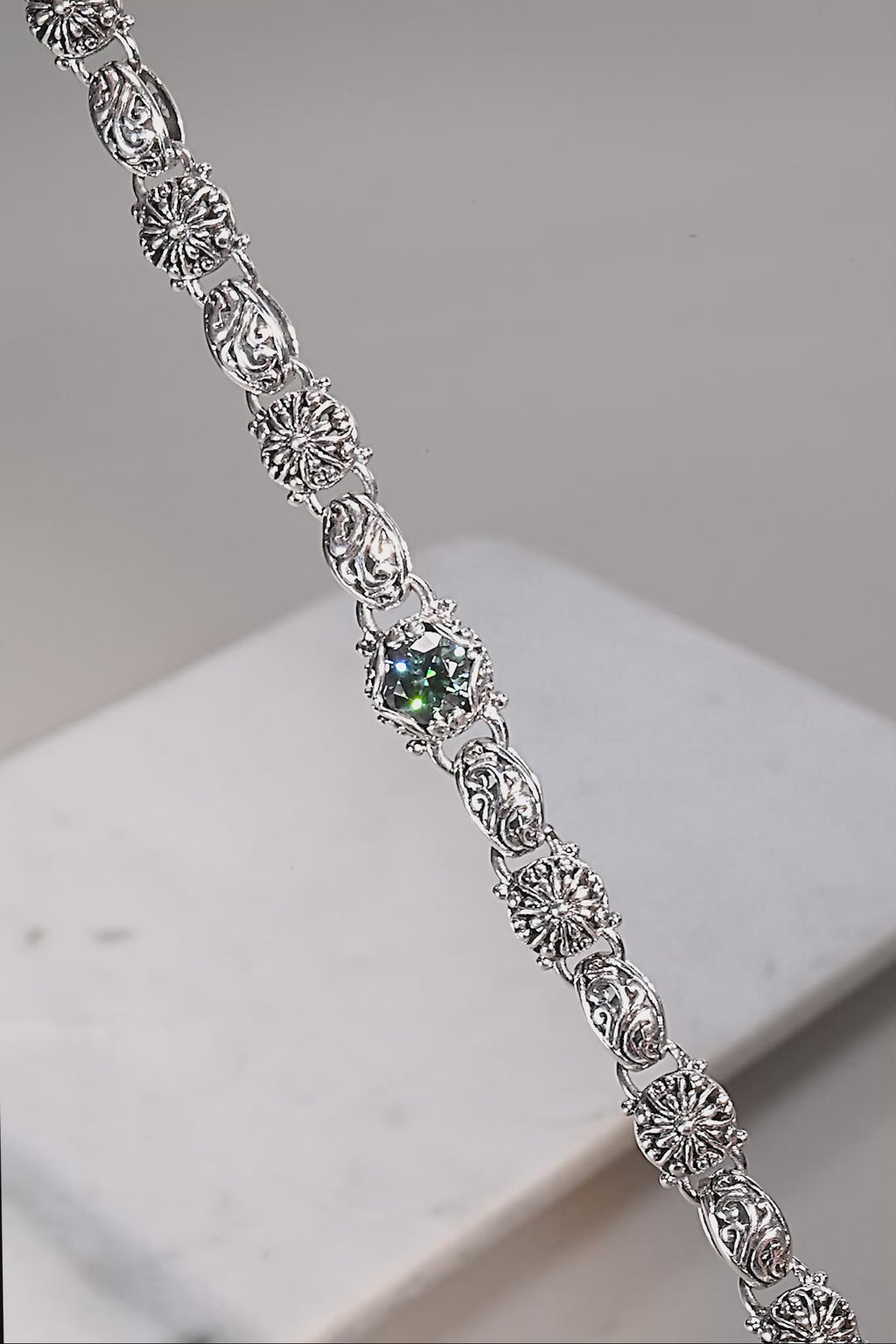 Sterling Silver Tree Of Life & Janyl Adair Bali Hai™ Mystic Moissanite Adjustable Single Stone Toggle Bracelet™