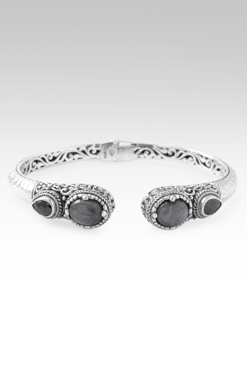 Sterling Silver Hammered Eagle's Eye & Black Spinel Oval Tip-To-Tip Bracelet With Retention Hinge™