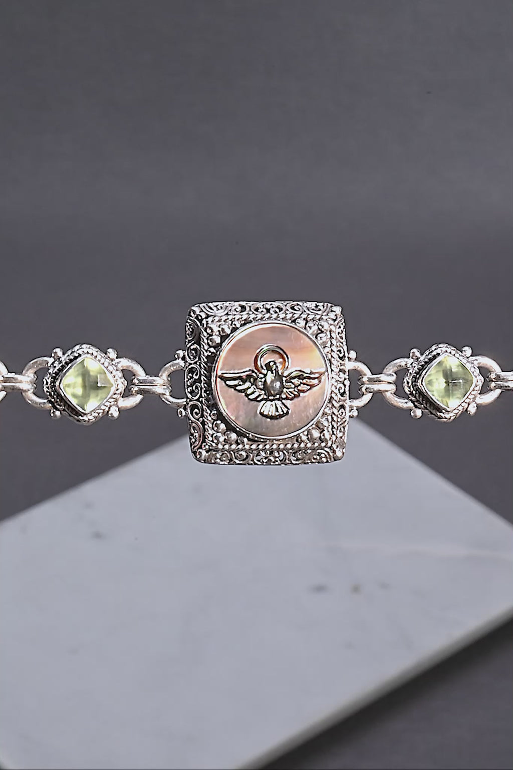 Sterling Silver Tree Of Life Black Mother Of Pearl Carved Dove, Golden Sheen Obsidian & Prehnite Adjustable Multi Stone Lobster Claw Bracelet™