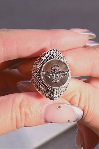 Sterling Silver Tree Of Life Black Mother Of Pearl Carved Dove Ring™