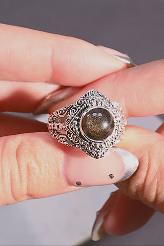 Sterling Silver Tree Of Life Golden Sheen Obsidian Ring™