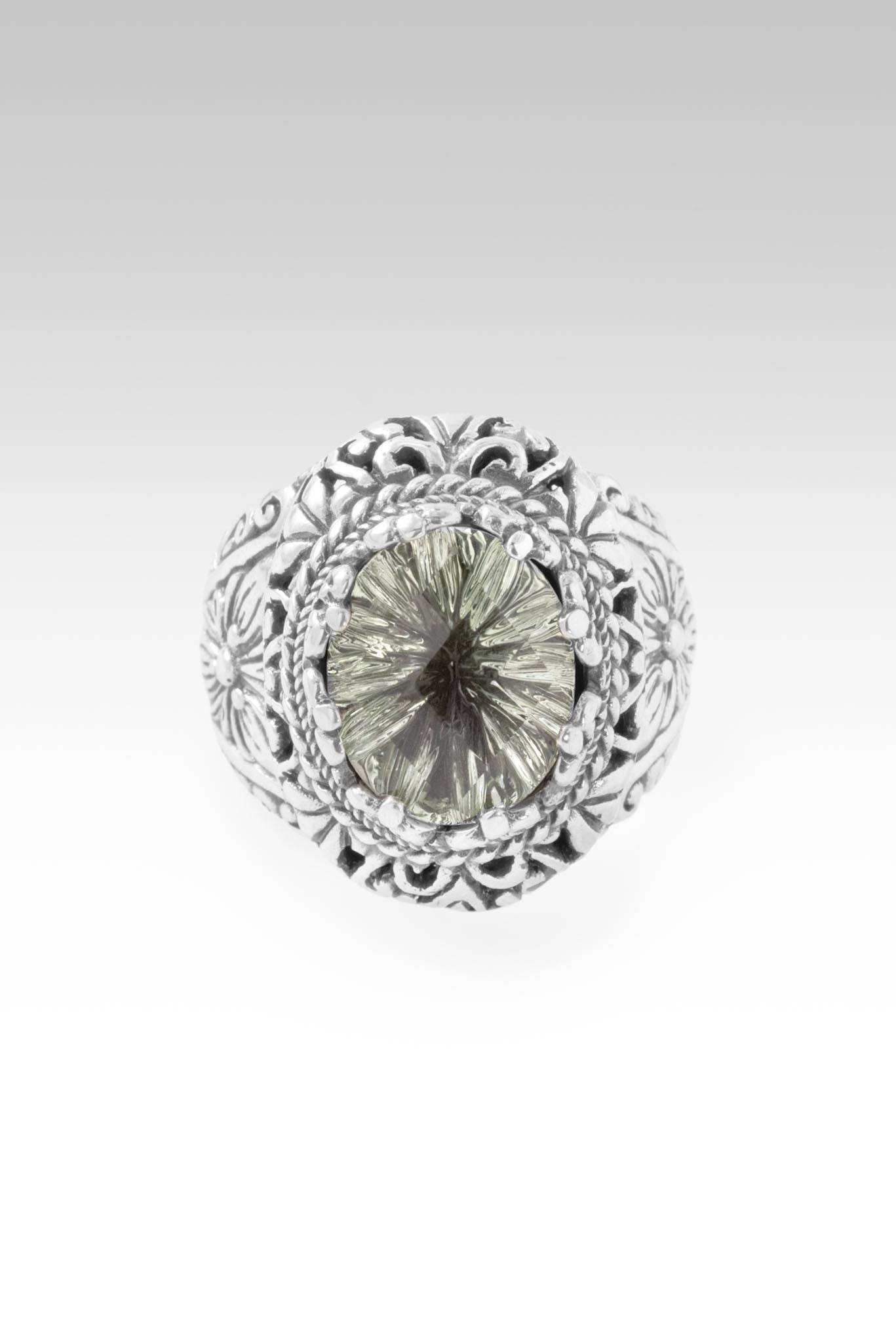 I loved this ring so much I bought 2 different sizes! Prasiolite is one of my favorite stones. With the quality, color and unique birds nest cut Janyl did on this ring I had to. The setting with leaves running up the band and around the stone is one of my favorites she has done. Simple yet complex at the same time. Just love it!