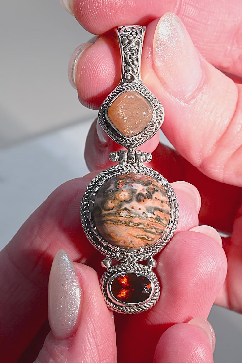 Time To Renew Pendant™ Leopard Skin Jasper, Madeira Citrine & Peach Sunstone