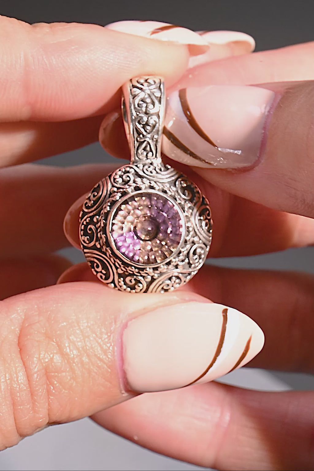 Sterling Silver Janyl Adair & Hammered Rose De France Ametrine Single Stone Pendant With Incorporated Magnetic Enhancer Bail™