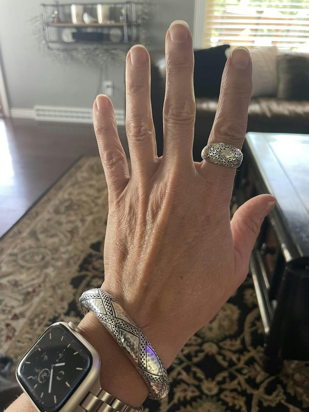 Bold and beautiful ring. Matches bracelet perfectly.