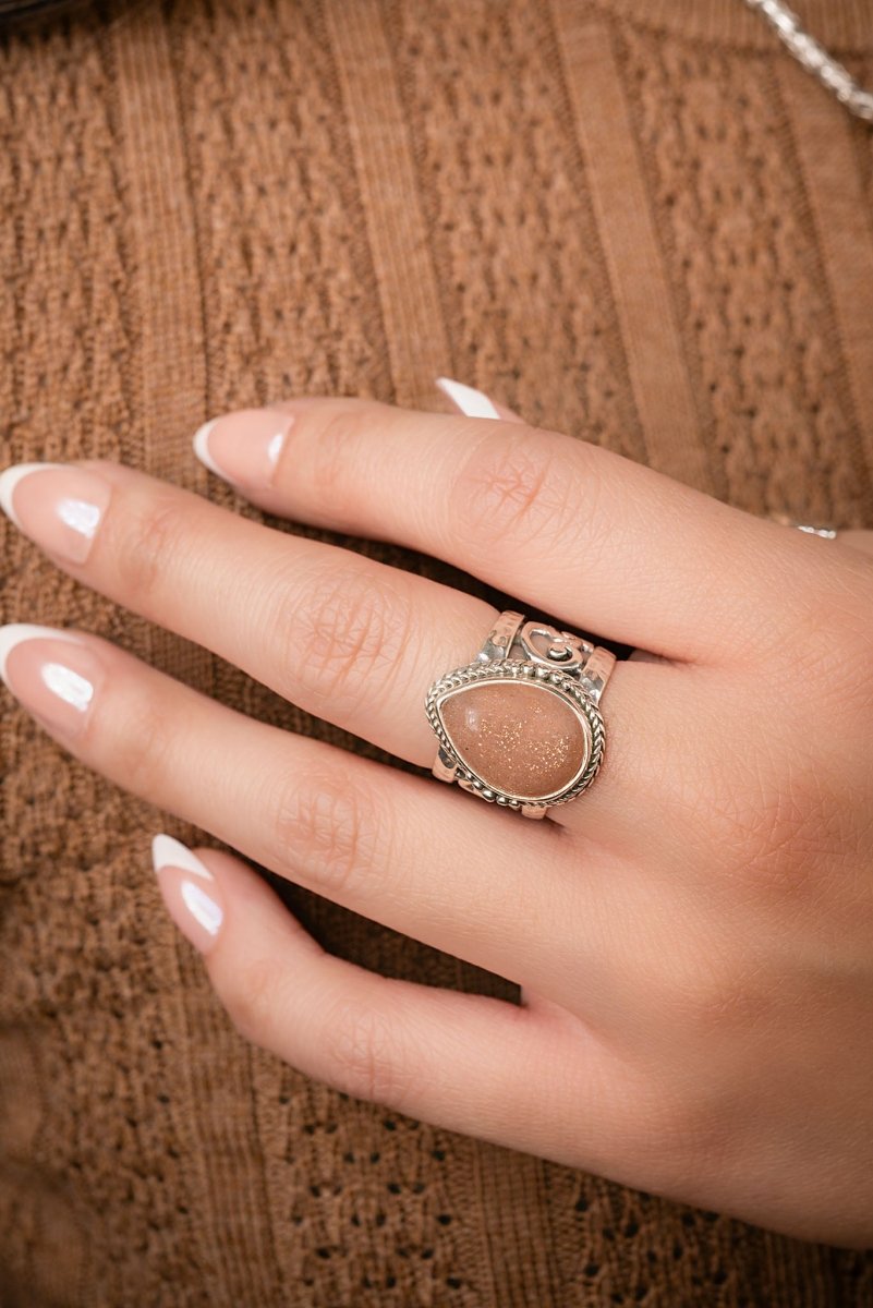 Sterling Silver Tree Of Life Peach Sunstone Ring™