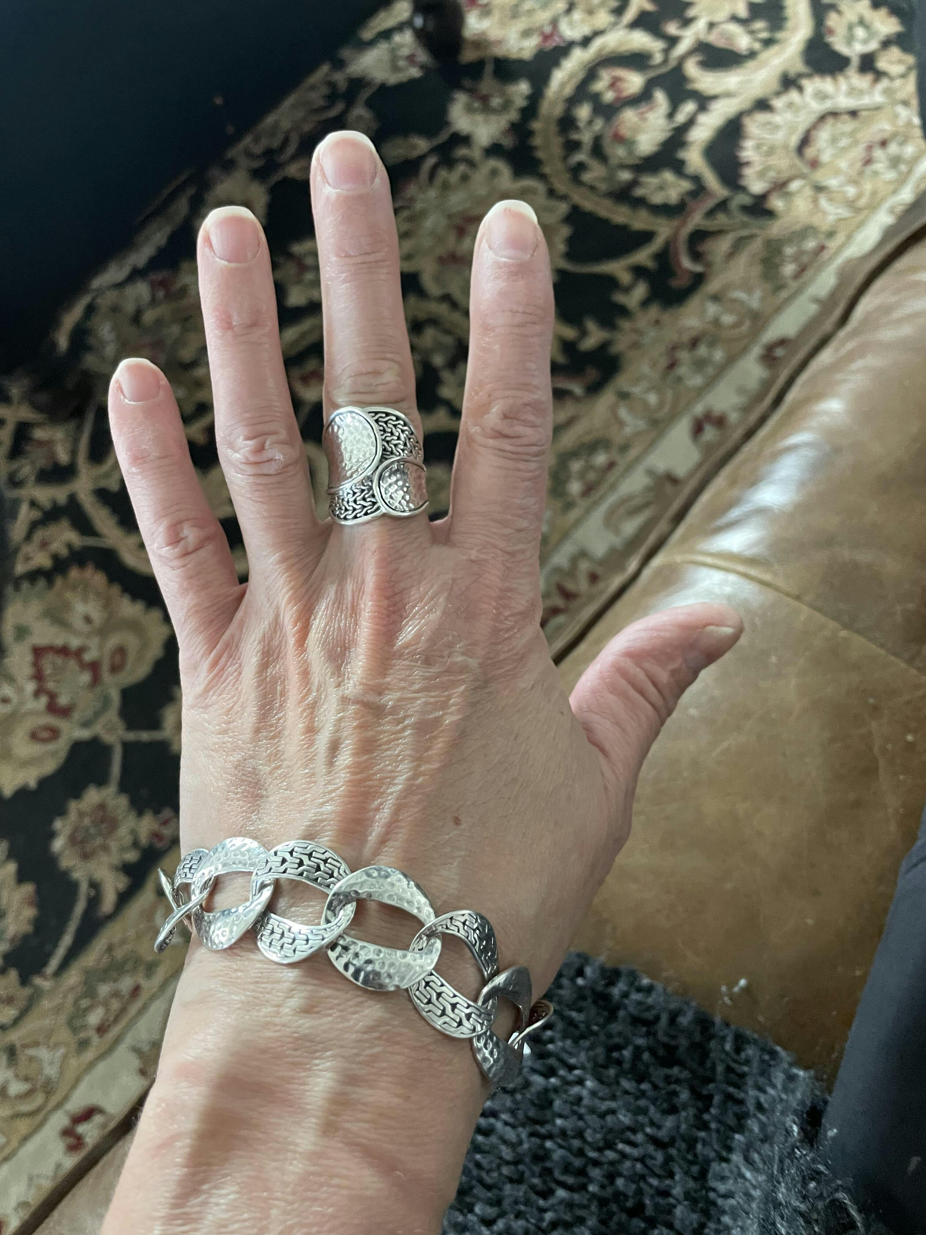 The chain link motif is Artisan indeed! Sarda has created a fabulous ring in my favorite motif! Significant in weight yet feels nice and comfy on the finger! May just need another one! Love it! T