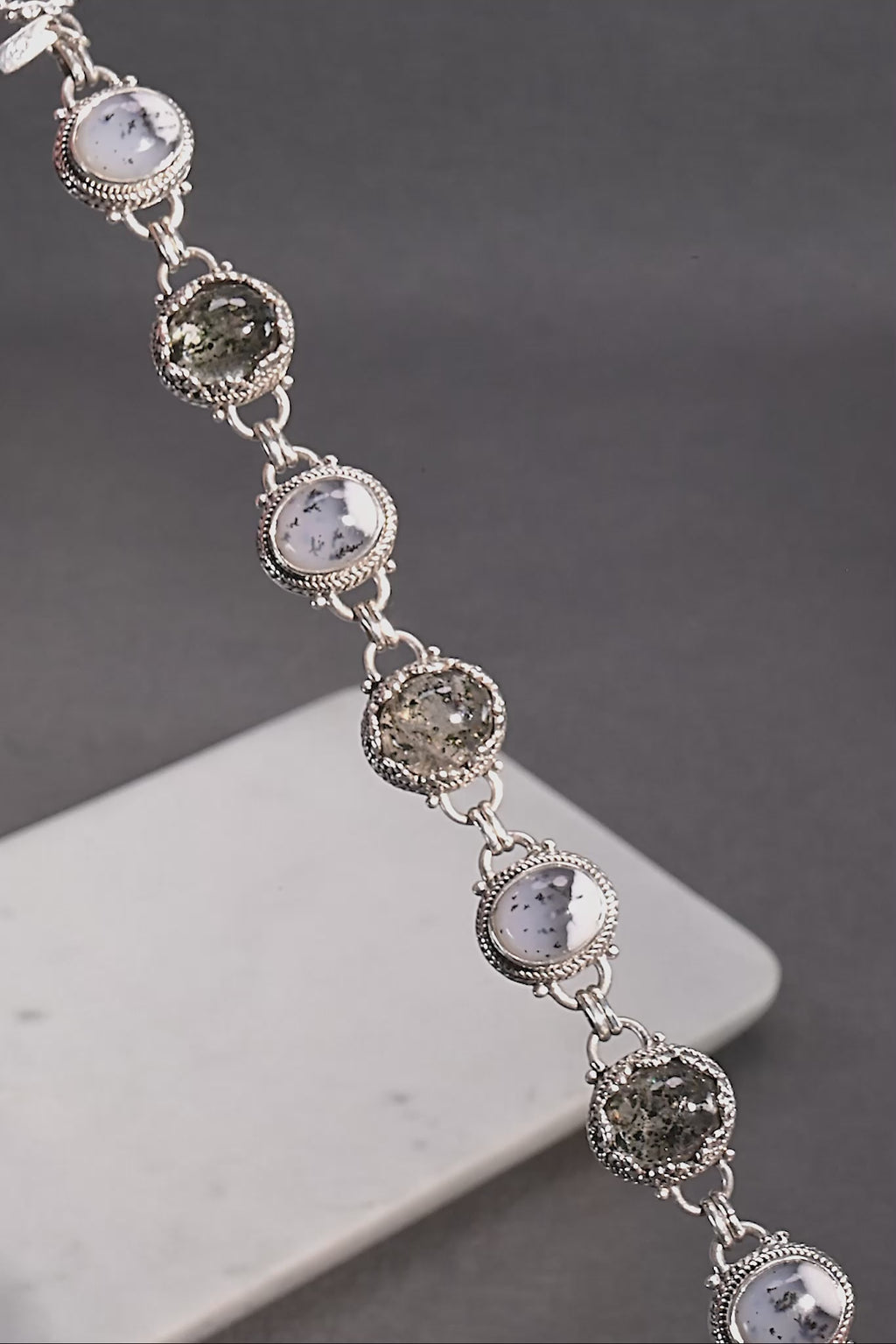 Sterling Silver Tree Of Life Sagenitic Quartz & Dendritic Opal Adjustable Multi Stone Toggle Bracelet™