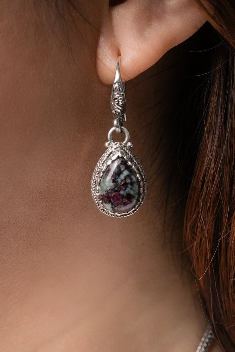 The Eudialyte earrings are so Cute! and the stones are amazing. Love the hook style and so comfortable.