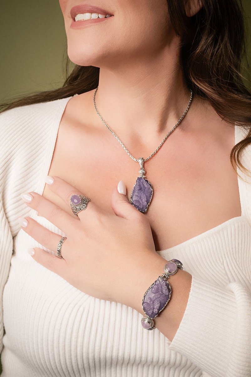 Use a soft cloth to gently wipe clean the item you wish to clean. Remove any remaining impurities with mild diluted soap. Rinse with warm water and dry thoroughly before storing away. Do not use abrasive cleaners, steamers or ultrasonic machines. Do not submerge or clean any of our gemstones with liquid cleaners.