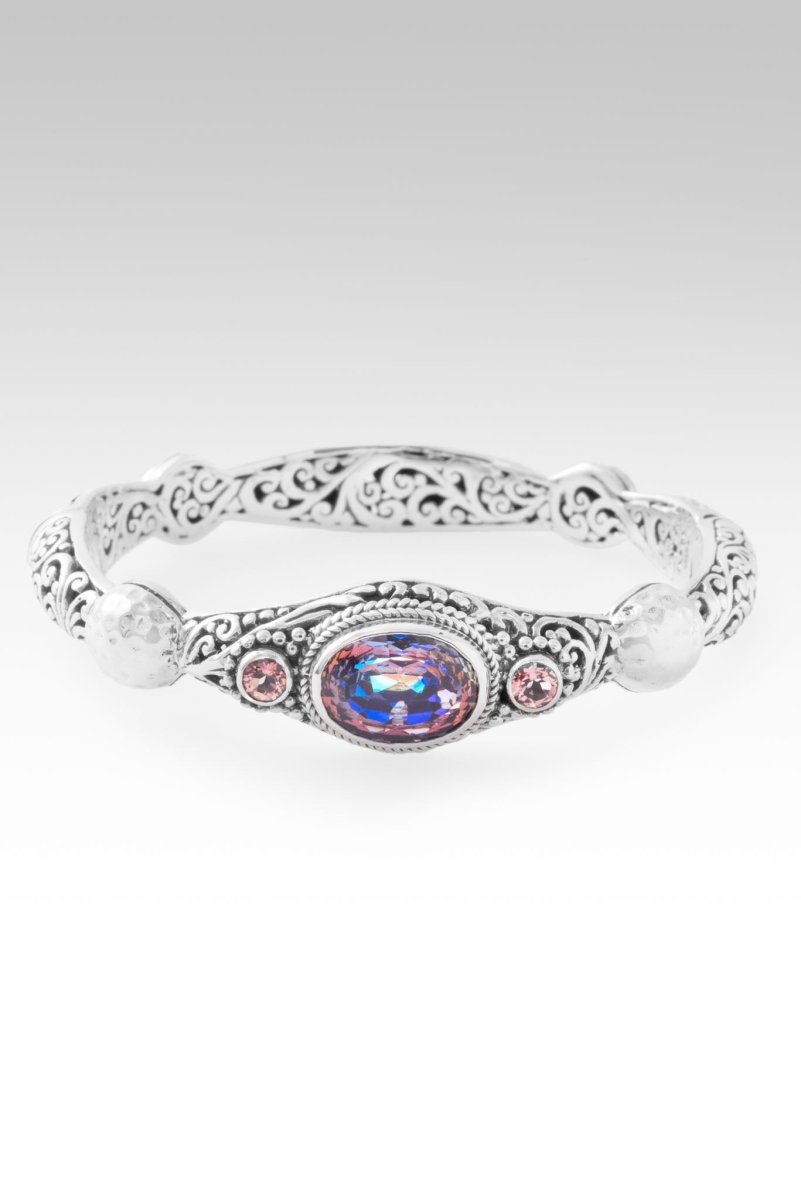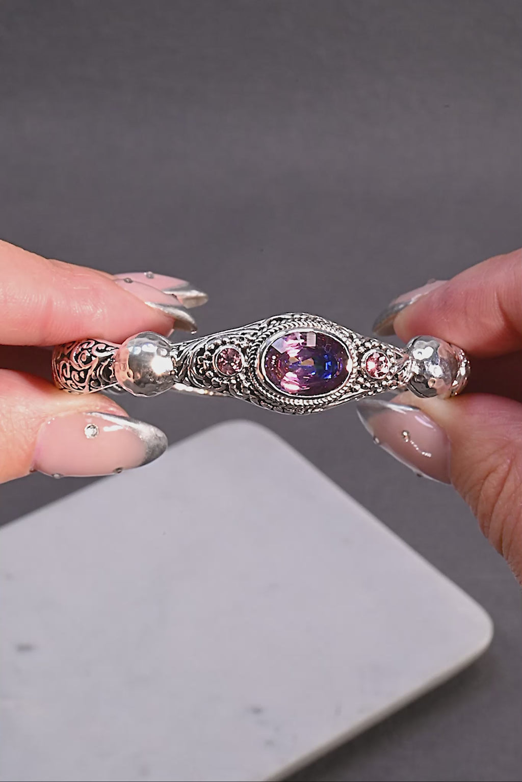 Sterling Silver Tree Of Life & Hammered Hawaiian Skies™ Mystic Quartz & J P Topaz™ Mystic Topaz Oval Bangle Bracelet With Magnets & Retention Hinge™