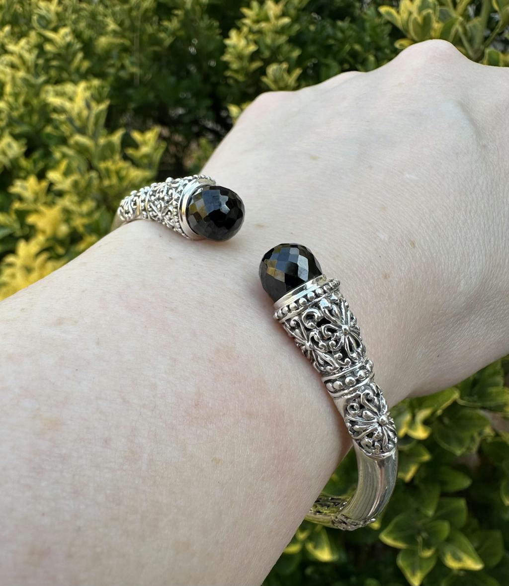 Sterling Silver Janyl Adair & High Polish Black Spinel Oval Tip-To-Tip Bracelet With Retention Hinge™