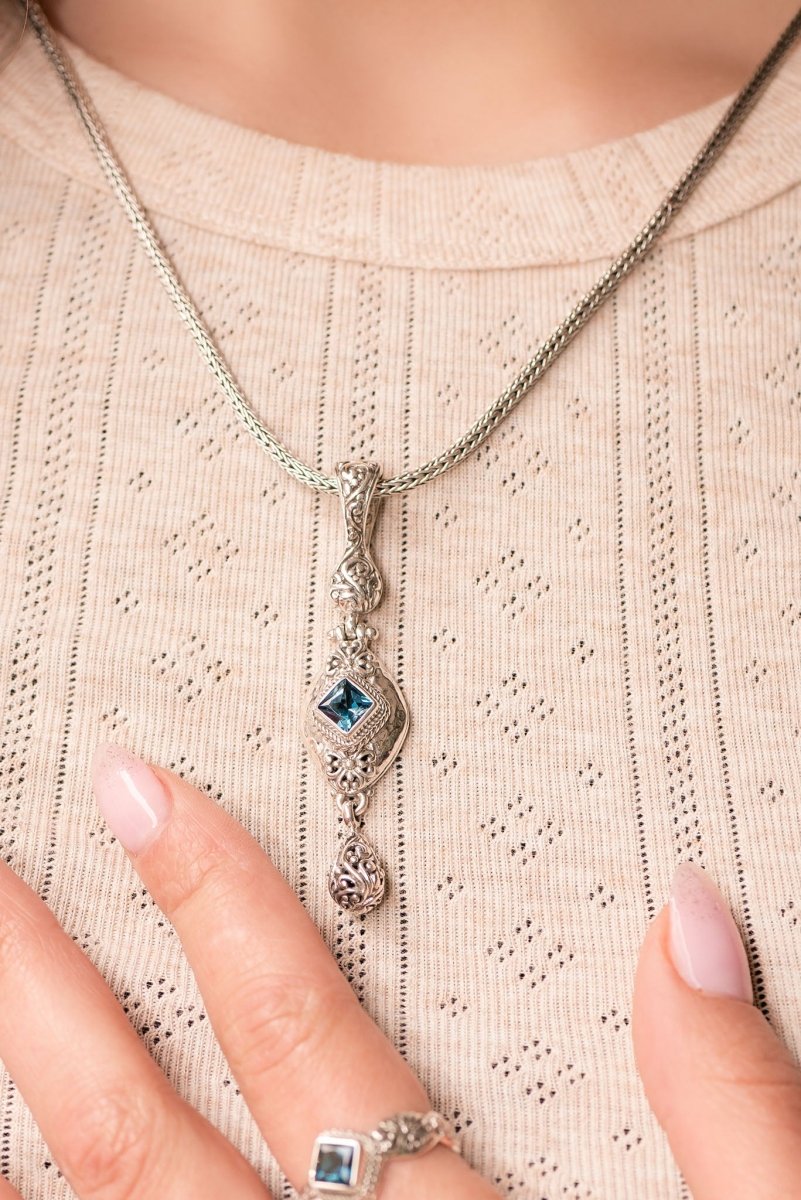 Sterling Silver Janyl Adair & Hammered London Blue Topaz Pendant With Magnetic Enhancer Bail™