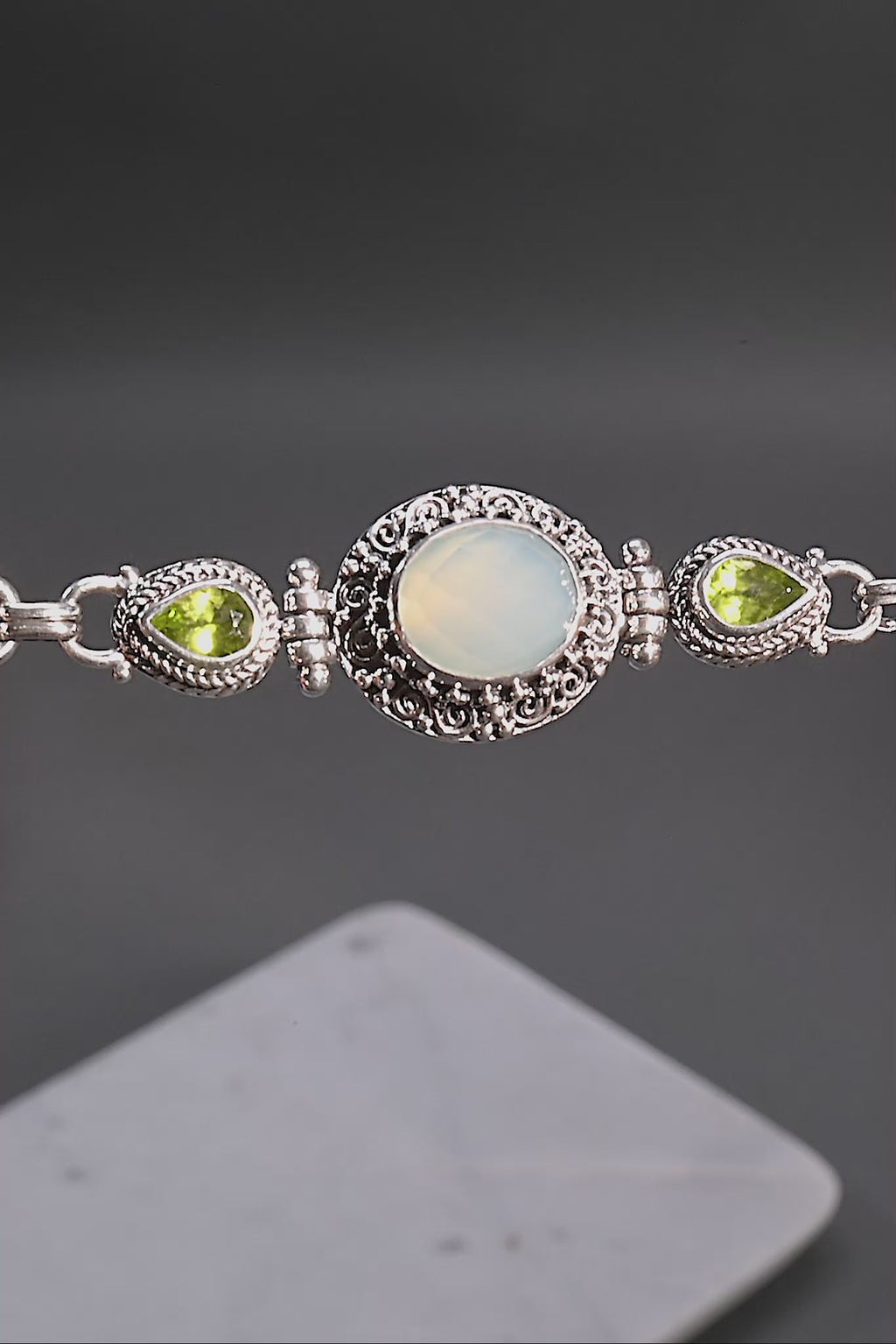 Sterling Silver Tree Of Life Seafoam Chalcedony & Peridot Adjustable Multi Stone Toggle Bracelet™