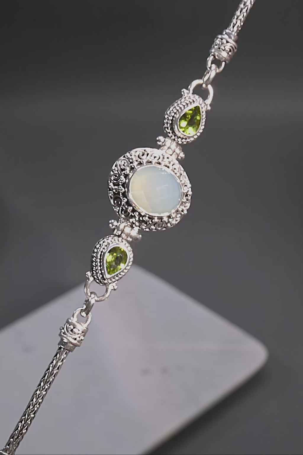 Sterling Silver Tree Of Life & Janyl Adair Seafoam Chalcedony & Peridot Adjustable Multi Stone Chain Lobster Claw Bracelet™