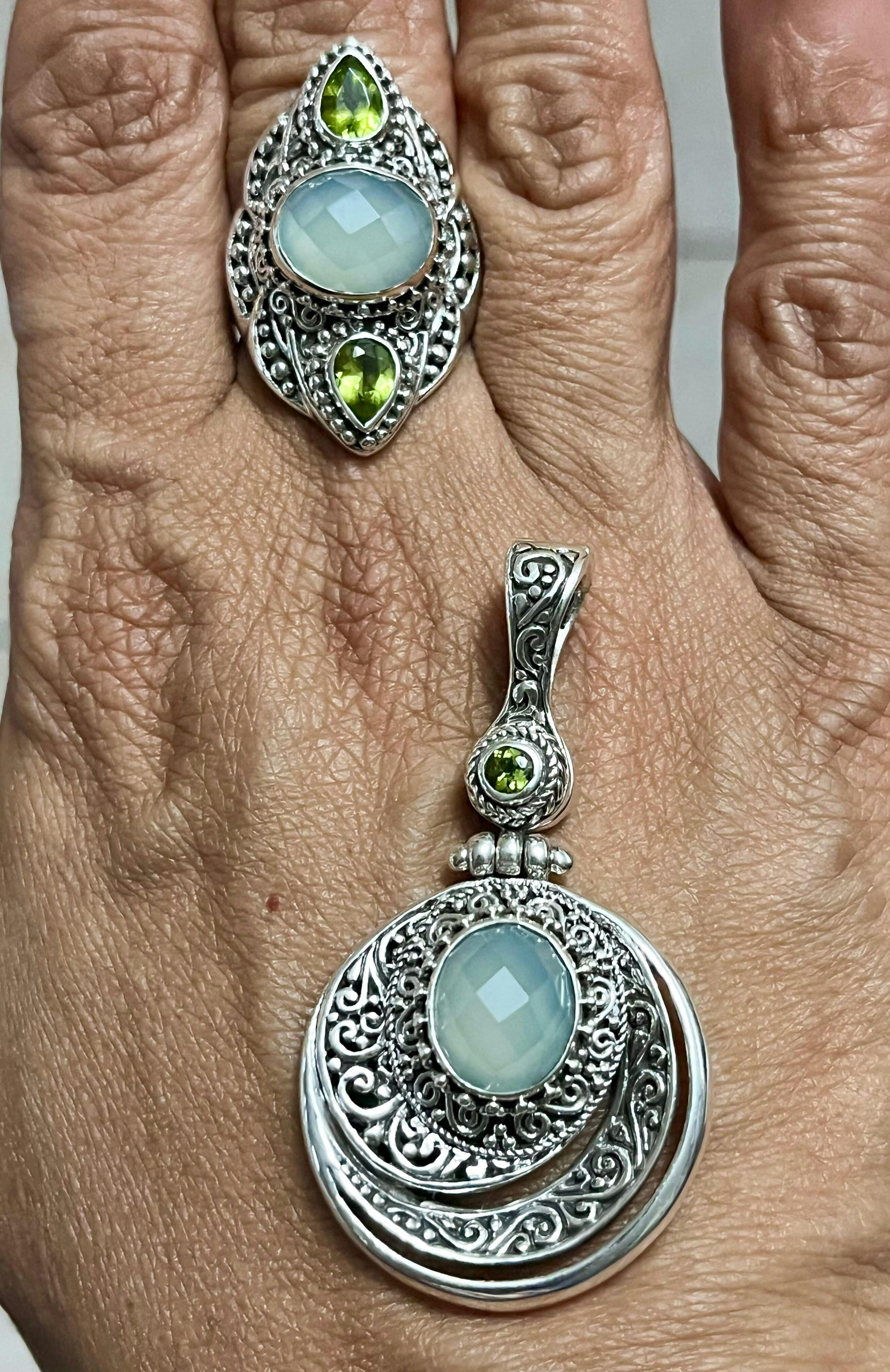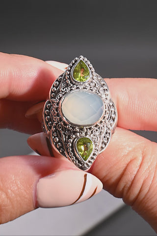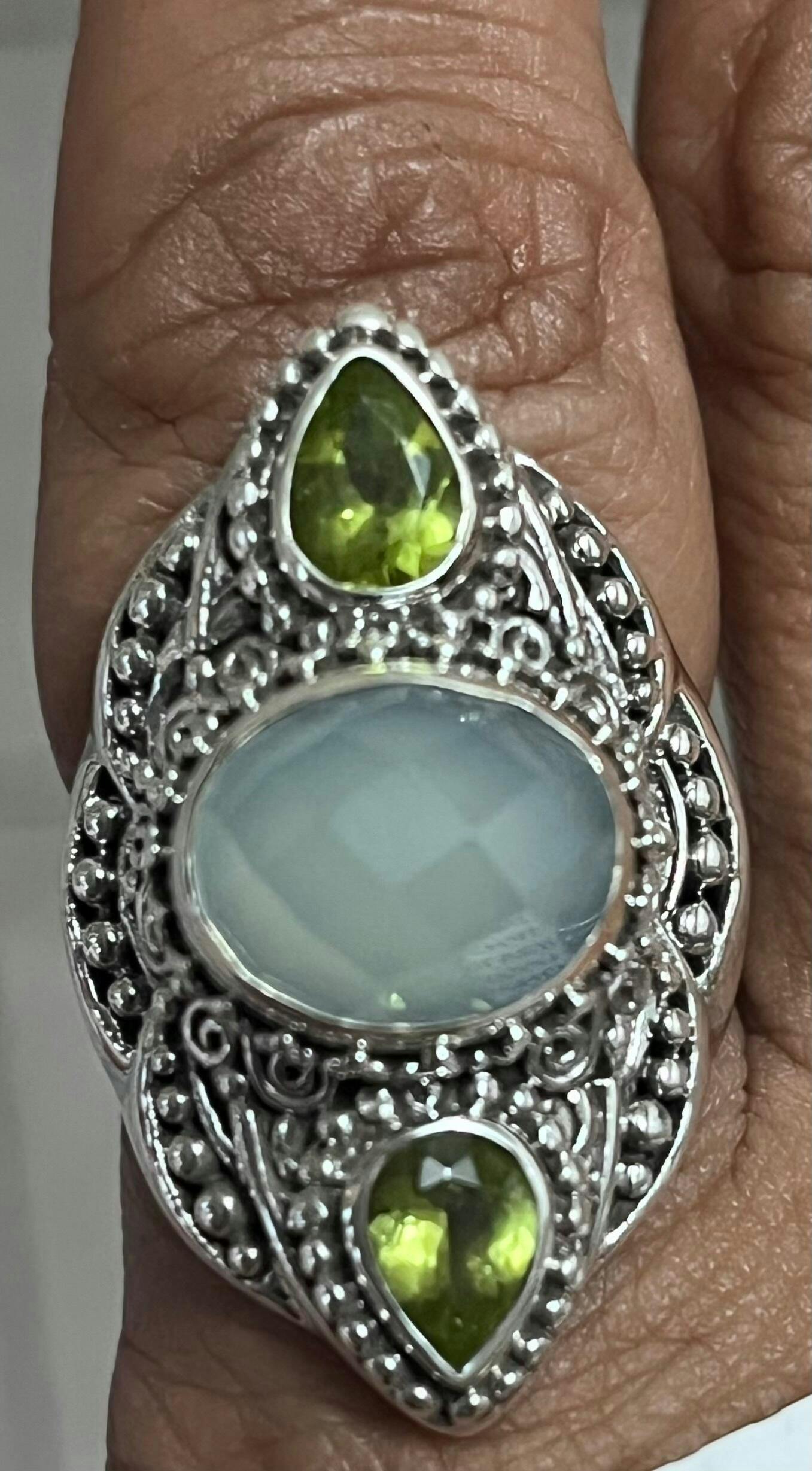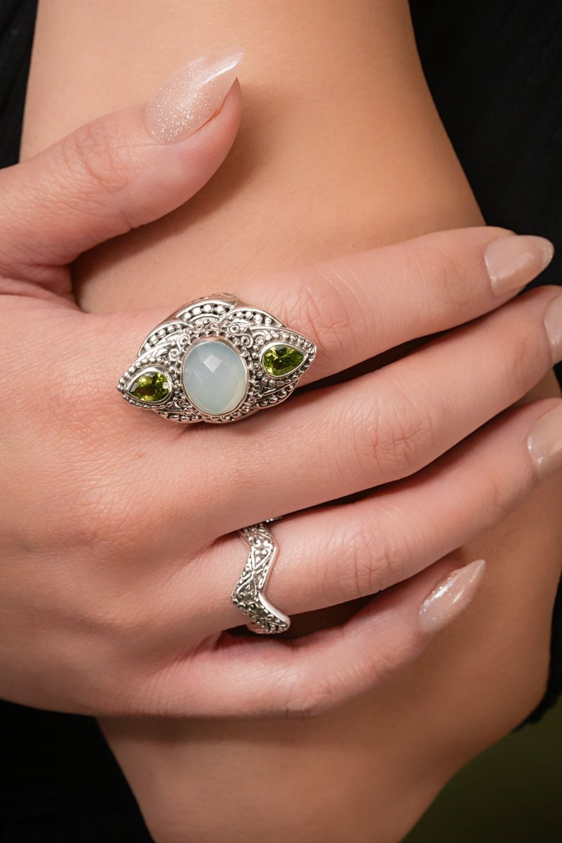 Sterling Silver Tree Of Life Seafoam Chalcedony & Peridot Ring™