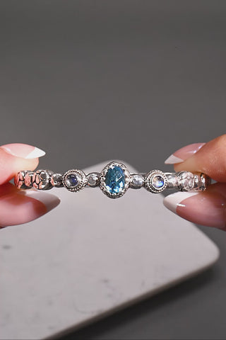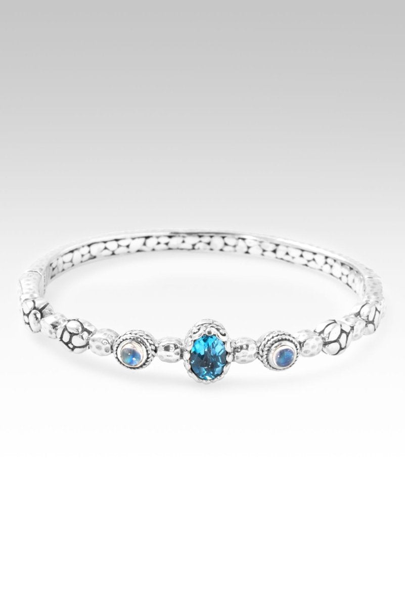 Hello Hope, Goodbye Hopelessness Bangle Bracelet™ in Swiss Blue Topaz & Rainbow Moonstone