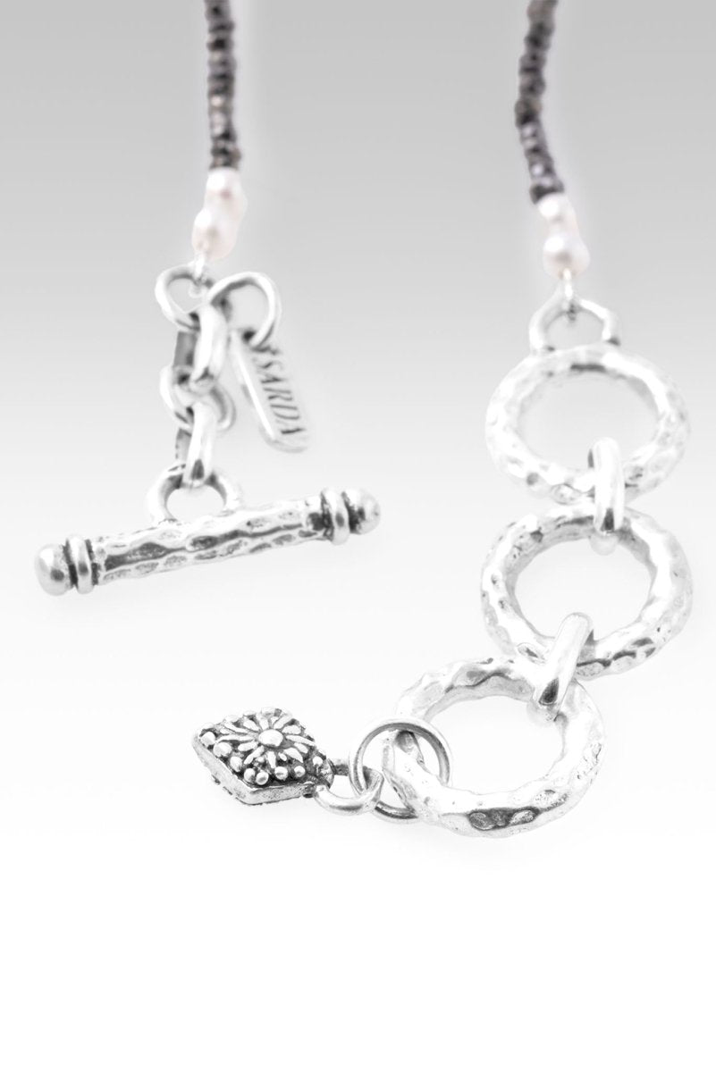 Beaded Black Diamond & Freshwater Pearl Necklace™ in Hammered