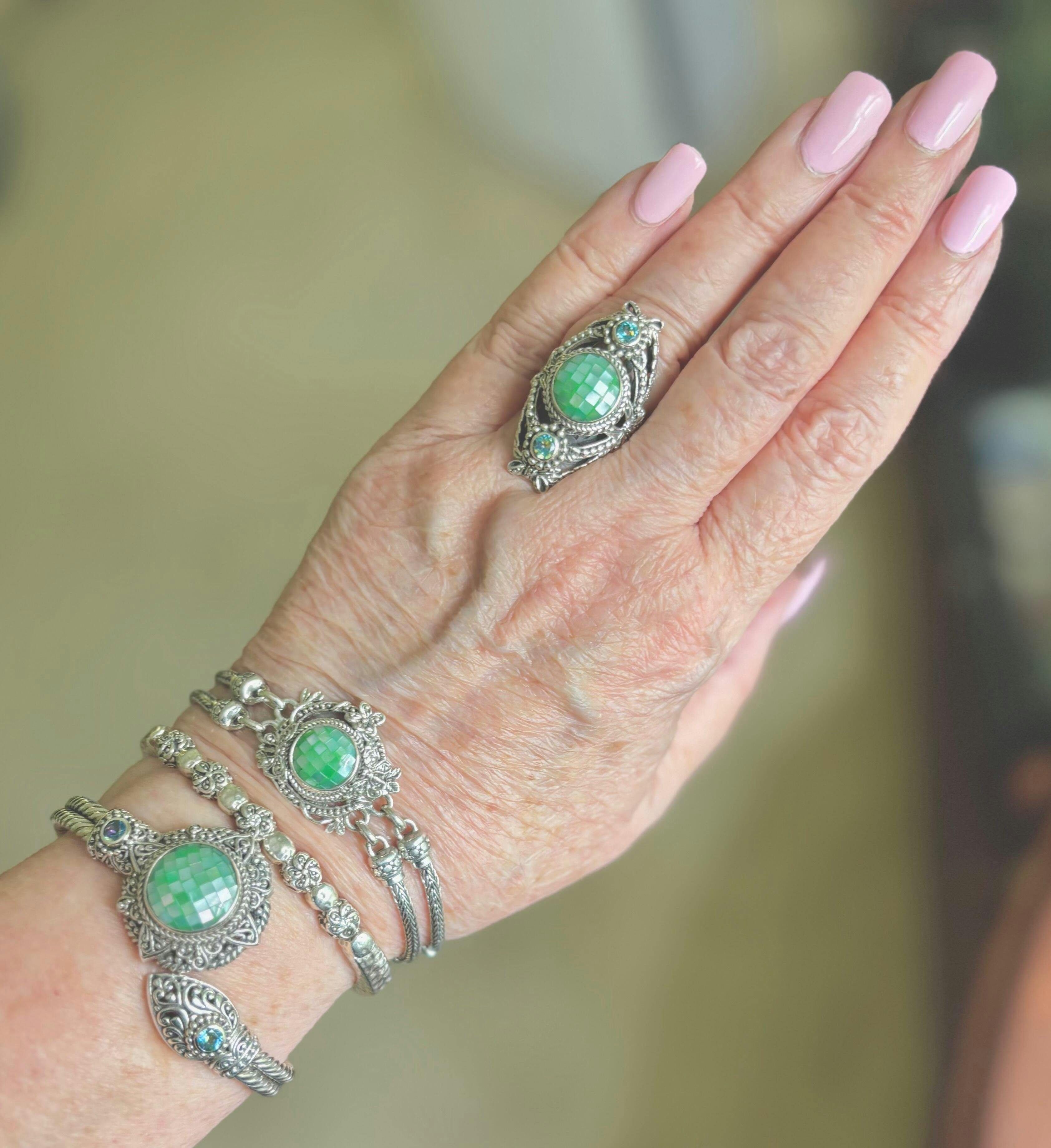 Countless Miracles Bypass Bracelet™ in Green Mother of Pearl Mosaic & Bali Crush™ Mystic Topaz