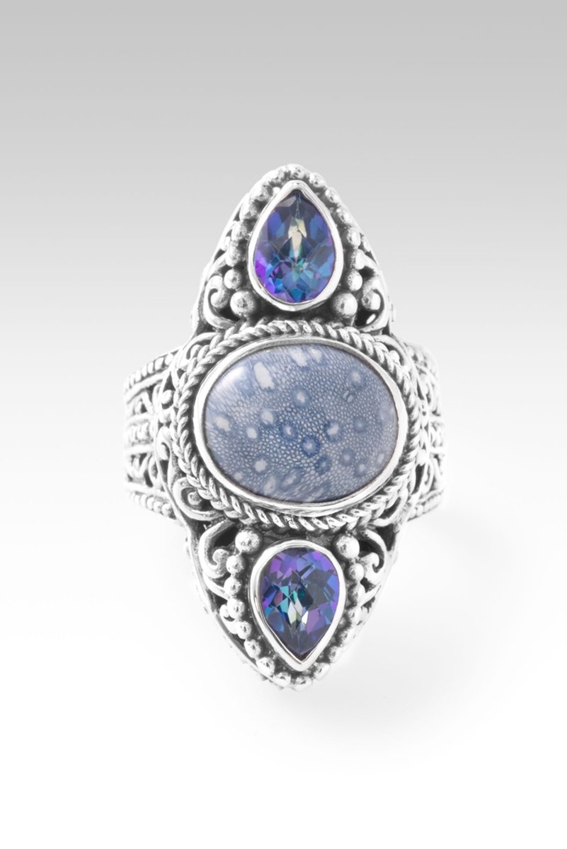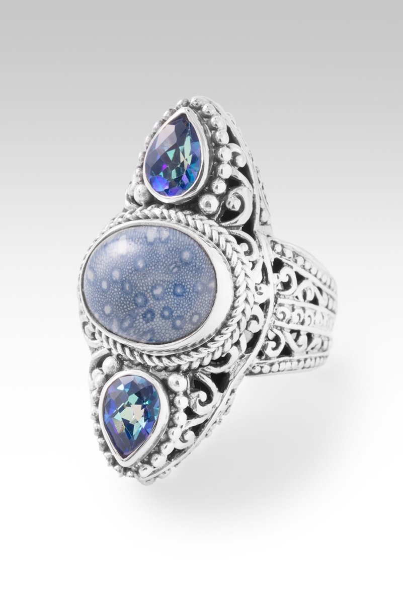 Graceful Presence Ring™ in Blue Sponge Coral & Sheer Luck™ Mystic Topaz