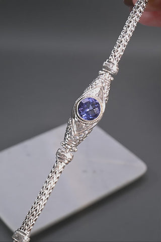 Sterling Silver Watermark Blue Violet Fluorite Adjustable Single Stone Chain Lobster Claw Bracelet™