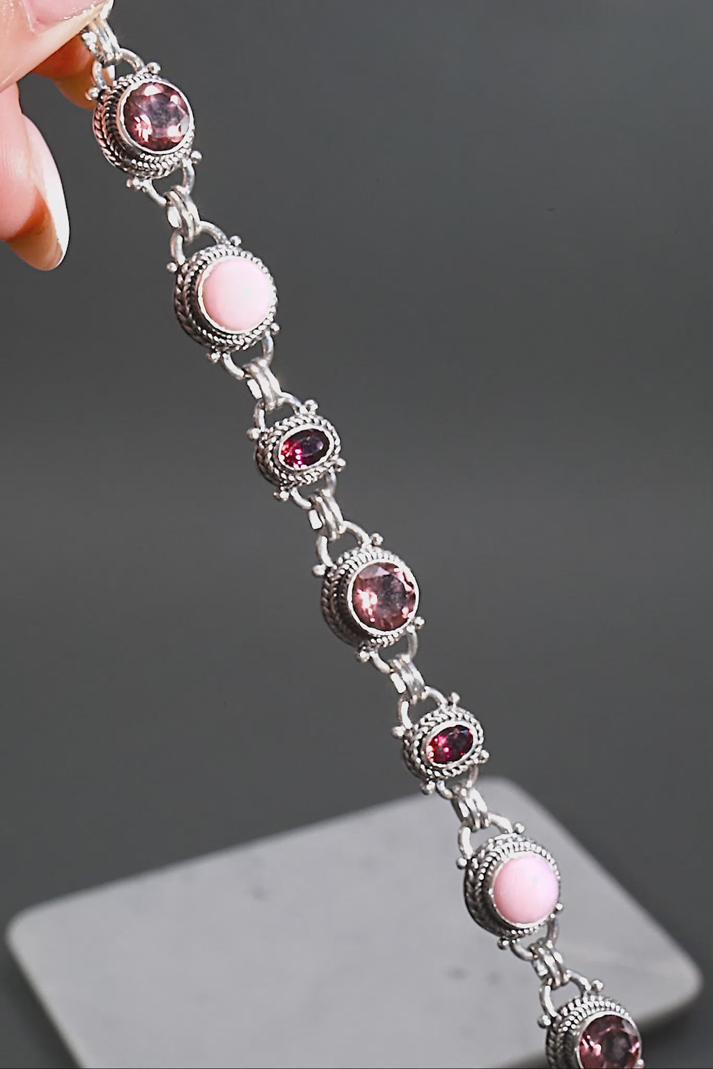 Sterliing Silver Always True Rose™ Mystic Quartz, Pink Opal & Pink Tourmaline Adjustable Multi Stone Lobster Claw Bracelet™
