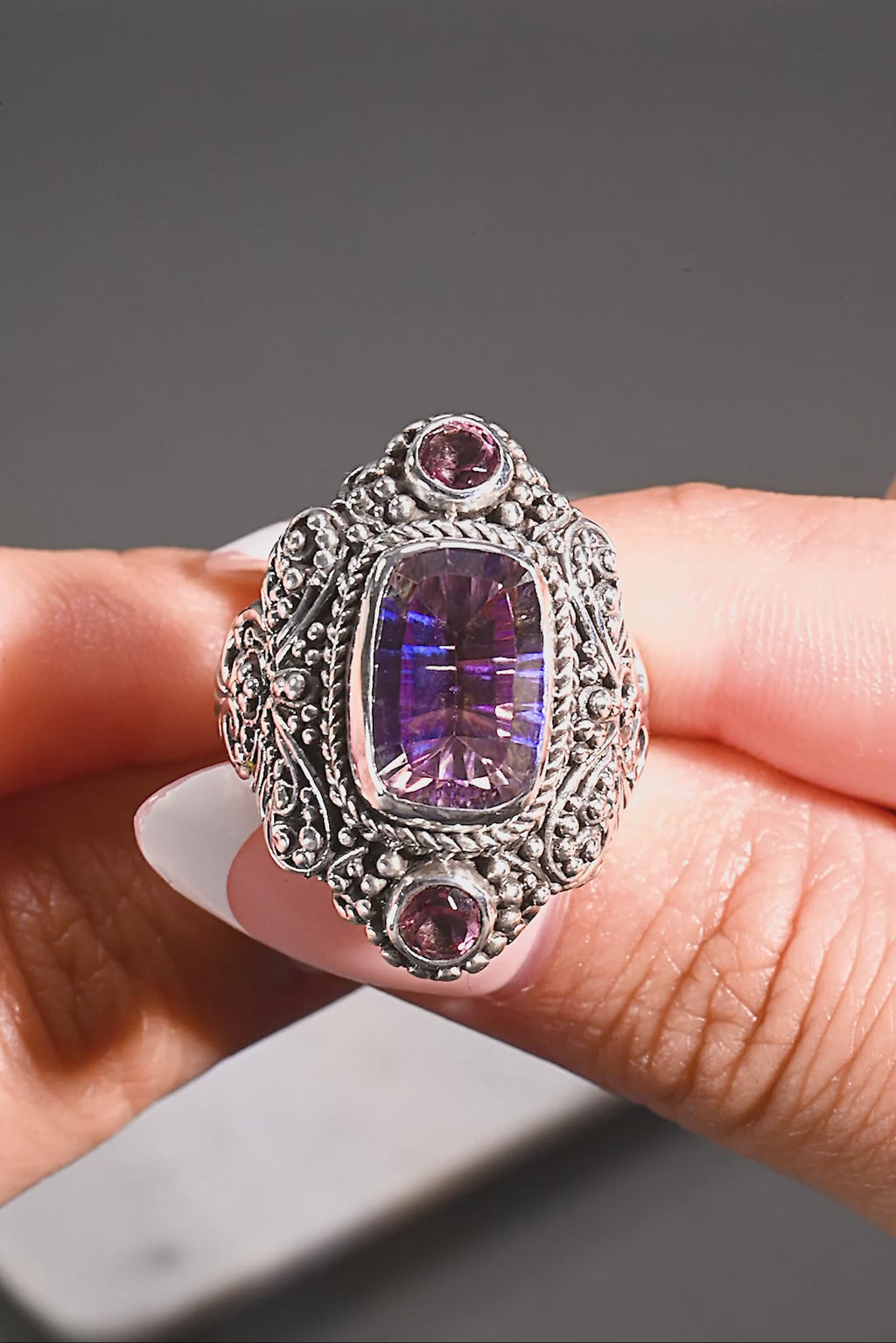 Sterling Silver Tree Of Life Lilac Rose De France™ Mystic Quartz & Pale Plum™ Mystic Topaz Ring™