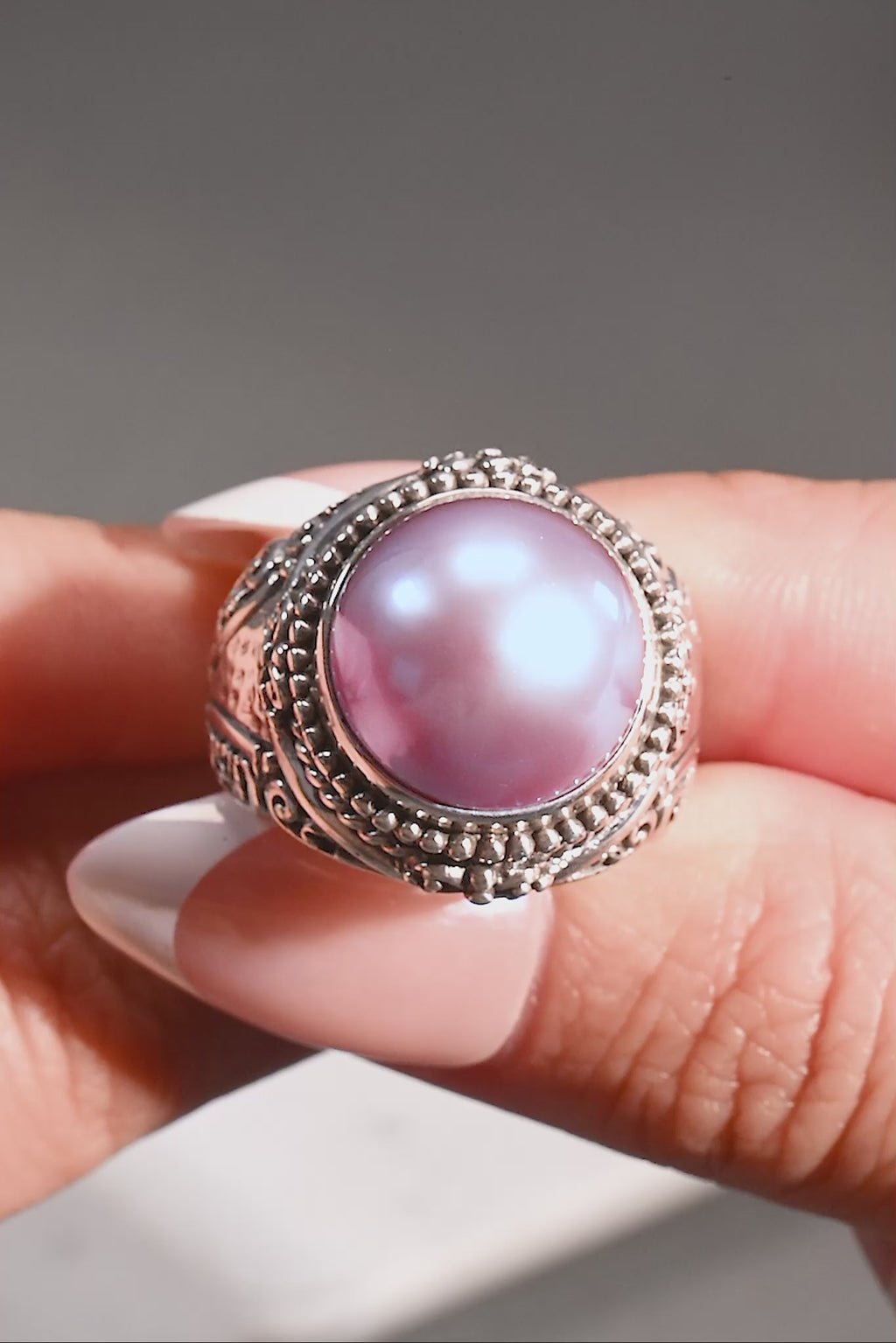 This Mabe’ Pearl ring is absolutely gorgeous! The pearl has the most beautiful shine & color & the design is elegant. Thank you, Janyl for bringing these luscious peals for us to treasure & enjoy!