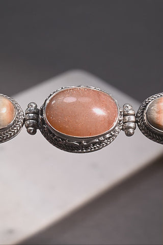 Sterling Silver Tree Of Life Celestobarite & Peach Sunstone Adjustable Multi Stone Toggle Bracelet™