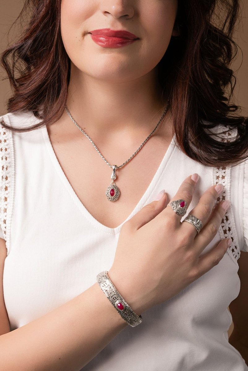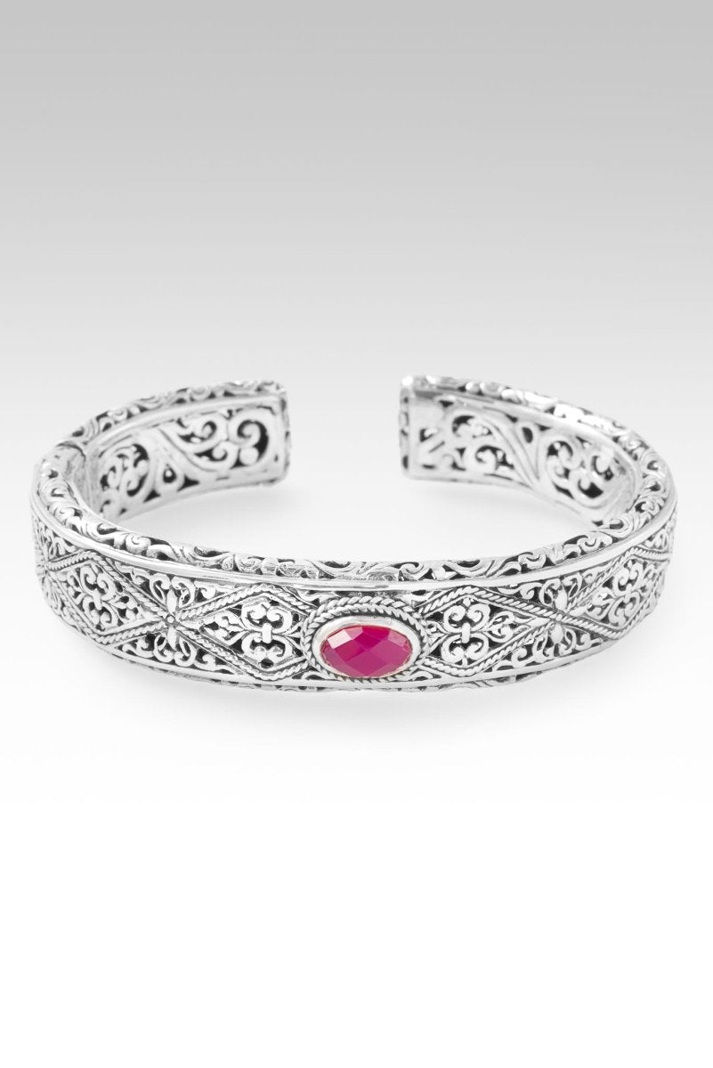 Sterling Silver Tree Of Life & Hammered Red Currant Quartz Oval Bangle Cuff With Single Retention Kickback™