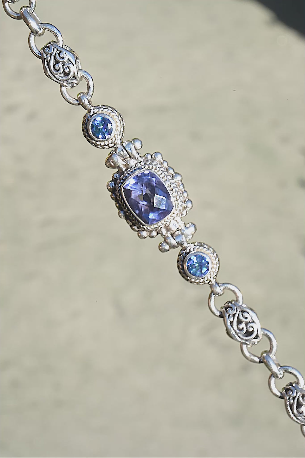 Sterling Silver Tree Of Life Blue Violet Fluorite & Sheer Luck™ Mystic Topaz Adjustable Multi Stone Link Lobster Claw Bracelet™
